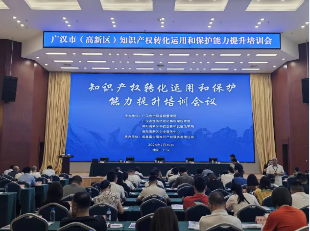 7月29日上午,由成都嘉企盾知識(shí)產(chǎn)權(quán)服務(wù)有限公司承辦,廣漢市市場(chǎng)監(jiān)督管理局、德陽(yáng)高新區(qū)科技創(chuàng)新和發(fā)展改革局、德陽(yáng)高新區(qū)企業(yè)服務(wù)中心主辦的知識(shí)產(chǎn)權(quán)轉(zhuǎn)化運(yùn)用和保護(hù)能力提升培訓(xùn)在德陽(yáng)高新區(qū)管委會(huì)一樓會(huì)議室順利舉行,本次培訓(xùn)涉及廣漢市、德陽(yáng)高新區(qū)重點(diǎn)企業(yè)代表100余人。